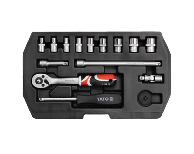 Trusa de chei tubulare si antrenor cu clichet de 1/4inch, 15 piese, de la 4 la 13 mm. Produs nou, fabricat de Yato, cod: YT-1444.